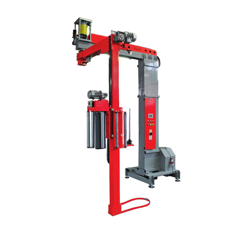 Macchina avvolgitrice semi-automatica a braccio rotante.