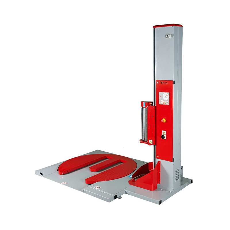 -ciclo di fasciatura solo durante la salita del carrello portabobina con arresto per il posizionamento di un cappuccio protettivo sulla parte superiore del bancale con 4 lati liberi